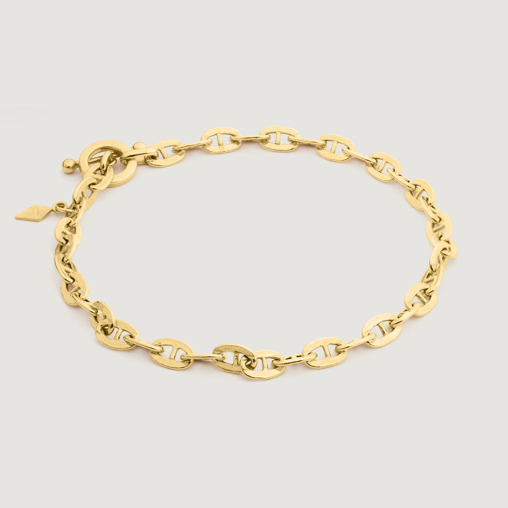 Annecy Sterling Silver Retro Oval Link T-Bar Bracelet 18ct Gold Plated Sterling Silver