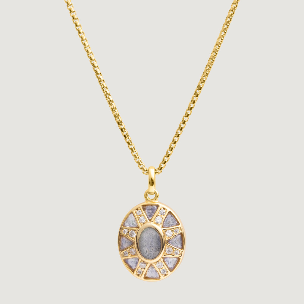 Annecy Labradorite Pyramid Pendant Necklace 18ct Gold Plated Sterling Silver